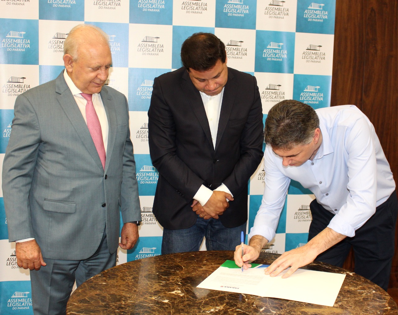 O ato de assinatura foi realizado no gabinete do deputado Ademar Traiano, presidente da Assembleia Legislativa, que viabilizou os recursos junto ao Governo, atendendo um pleito do vereador Ronaldo Bizotto. Também participou o secretário Sandro Alex, de Infraestrutura e Logística.