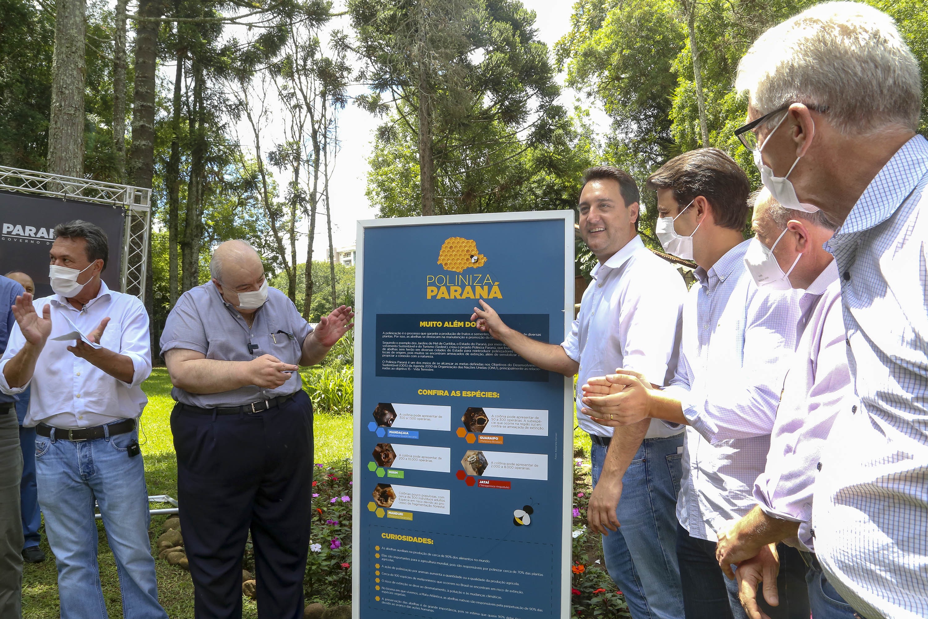 O governador Carlos Massa Ratinho Junior lançou nesta quinta-feira (20) um programa para a instalação de colmeias de abelhas nativas sem ferrão nos parques urbanos do Estado. A ação faz parte do Poliniza Paraná, desenvolvido pela Secretaria do Desenvolvimento Sustentável e do Turismo (Sedest), que tem como objetivo espalhar para 398 municípios os Jardins de Mel idealizados pela Prefeitura de Curitiba, replicando o projeto que promove a criação de abelhas nativas sem ferrão, responsáveis pela polinização de cerca de 90% das plantas brasileiras.