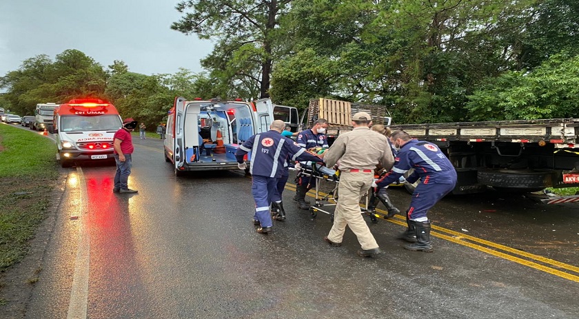 O SAMU e o Corpo de Bombeiros foram acionados para socorrer as vítimas, na S10, dois jovens que estavam de carona morreram e o motorista foi socorrido em estado grave. O condutor do caminhão não se feriu.