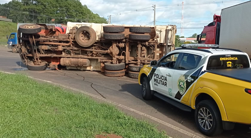 De acordo com informações, o caminhão vinha de Marmeleiro e iria até o interior de Beltrão. O motorista disse que o caminhão tombou por conta do peso.