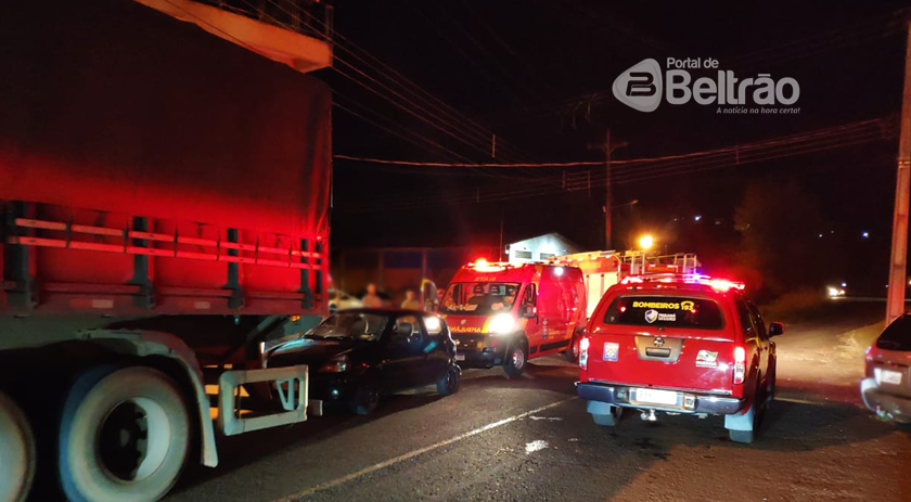 Uma colisão envolvendo um Renault Clio e uma carreta, foi registrada na noite deste domingo (03/04), na PR-483, nas proximidades da ponte do Rio Marrecas em Francisco Beltrão.