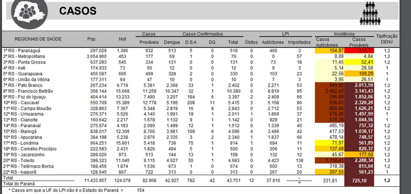 Mais um boletim epidemiológico sobre a dengue, foi divulgado pela Secretaria do Estado da Saúde (SESA), nas últimas horas. Os dados apurados neste boletim foram contabilizados até a última semana, ou seja, até o dia (07/05).