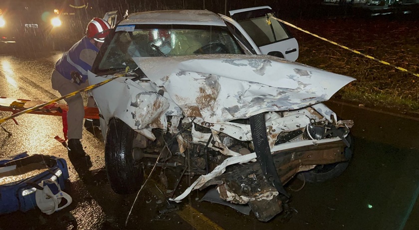 No momento do sinistro chovia muito no local. A Polícia Rodoviária Estadual foi acionada para os procedimentos.