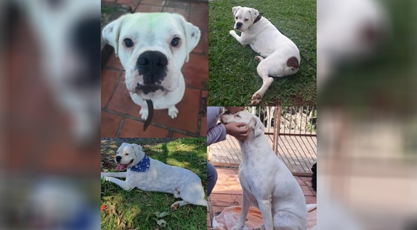 "Faz mais de um mês que nosso cão fugiu, não voltou mais. Certamente alguém está com ele e peço por gentileza que nos devolva. Se alguém ver ele amarrado em algum lugar peço que me avise”, afirma sua tutora Daniele.