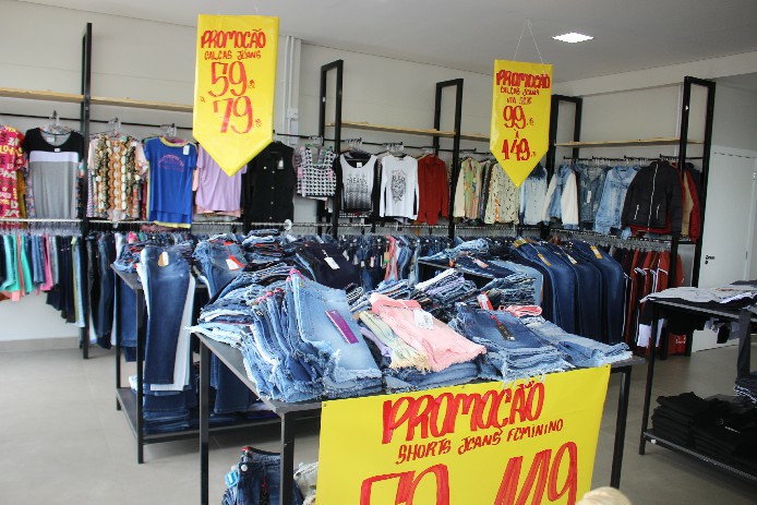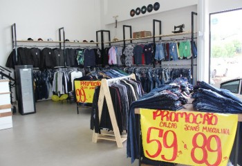 Novo espaço, variedade em jeans e novos setores! A loja, conta uma grande diversidade em jeans e ótimos preços, na linha de calças, bermudas, camisetas, camisas e blusinhas da moda feminina e masculina, além de um setor dedicado a linha infantil. Venha conferir!