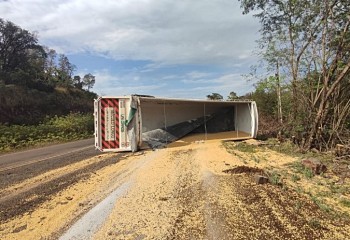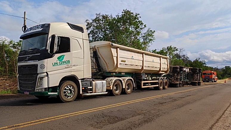 Uma carreta tombou na manhã deste sábado (03) em Capitão Leônidas Marques. R-163, região da curva do Barea.O acidente aconteceu por volta das 8h30min na B